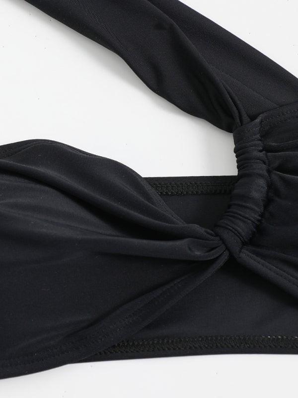 New solid color split swimsuit one shoulder slant shoulder solid color bikini