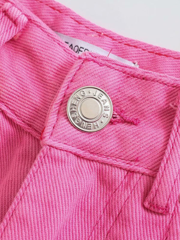 New Street High Waist Casual Straight Leg Wide Leg Pants Female Jeans