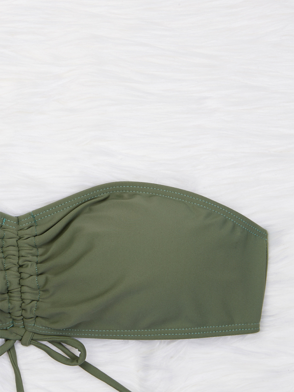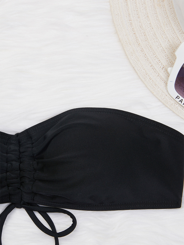 Solid color triangle bikini sexy tube top drawstring strap bikini