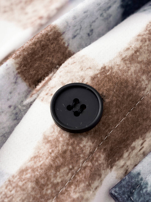 Women's Autumn and Winter Street Plaid Lapel Long Woolen Jacket