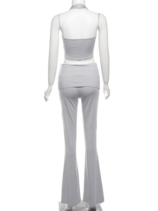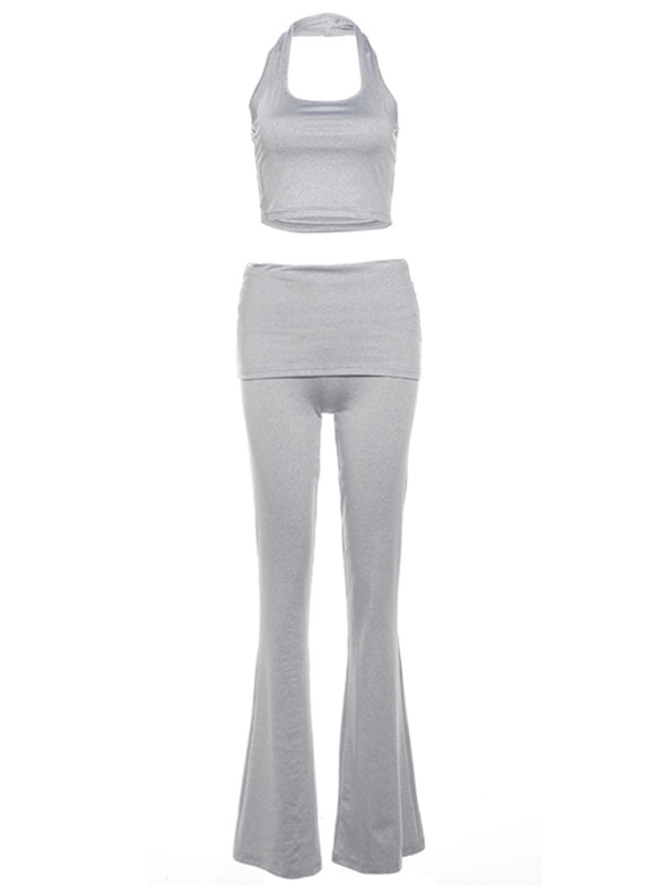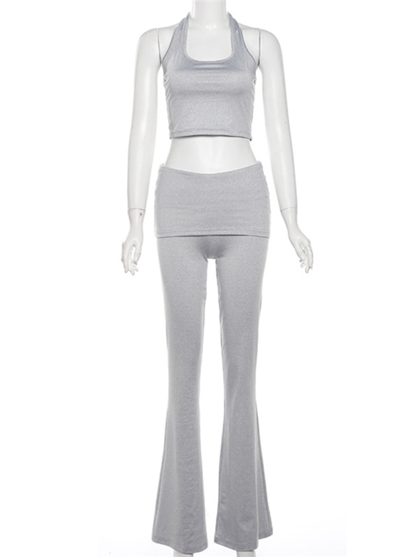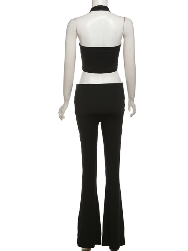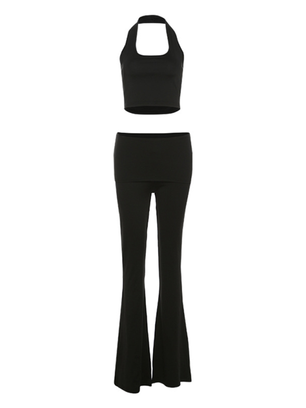 Women's new sexy belly-baring halter neck vest comfortable slim high waist flared trousers suit
